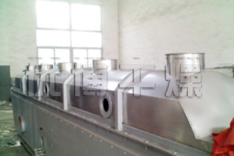 香料干燥機是由物料自進料進口進入機內,在振動力作用下,物料沿水平面流化床拋擲,向前連續運動,熱風向上穿過流化床同濕物料換熱后,濕空氣經旋風分離器除塵后由排風1:3排出.干...